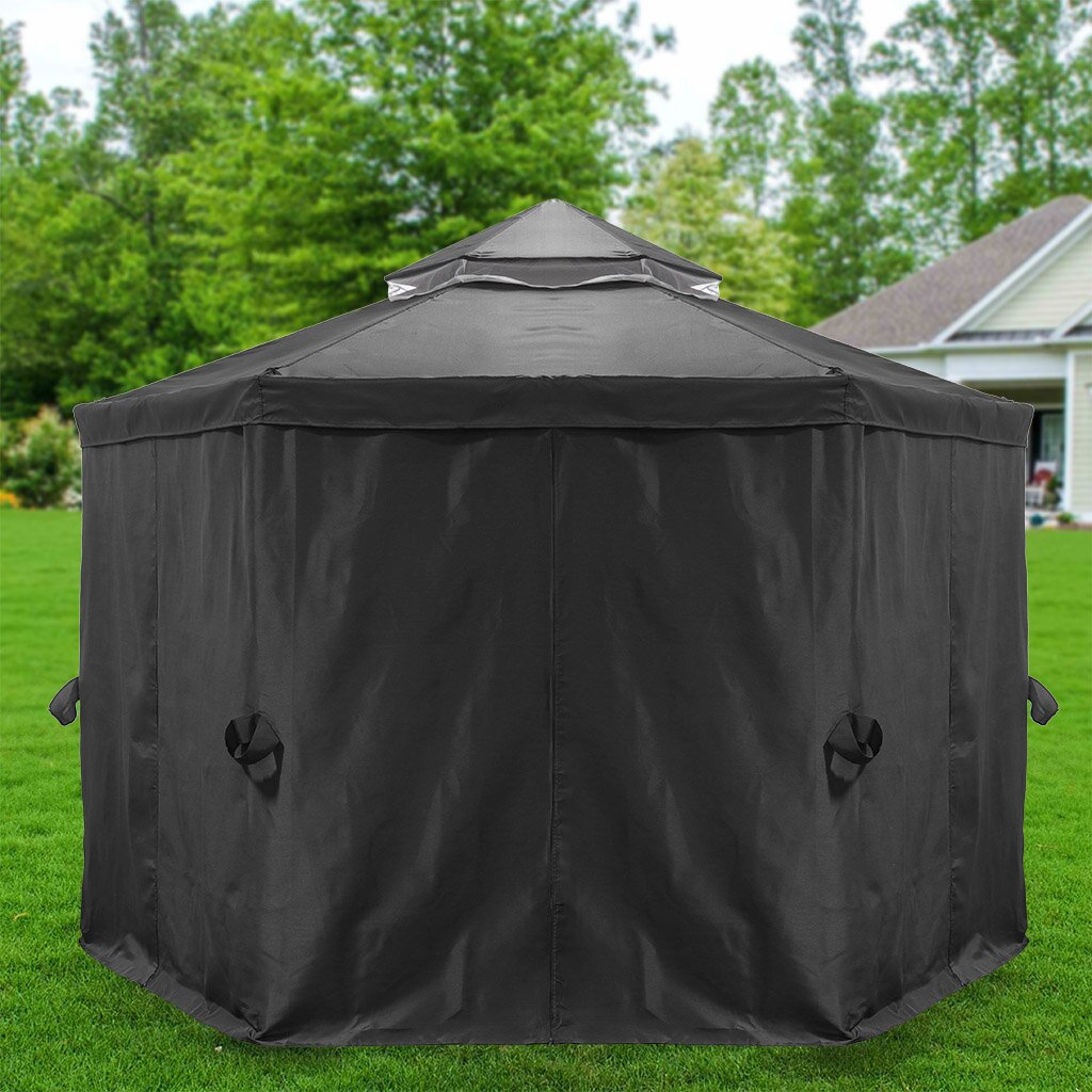 Мы предлагаем вам приобрести комплект, предназначенный для шестиугольного шатра с двойной крышей Green Days. Данный комплект выполнен в сером цвете, произведён он в России. В комплект входит тент-крыша, москитная сетка и шторы. Подойдёт данный комплект для шатра, имеющего размер 1,75 х 1,75 х 2,75 м. Крыша изготовлена из полиэстера с плотностью 93 г, и боковые стены из полиэстера с плотностью 93 г.